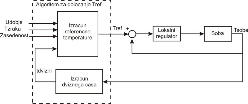 določitev optimalne referenčne temperature v prostorih, ko le-ti niso zasedeni in ob pravem času pred zasedenostjo prostorov vklopiti gretje ali hlajenje, da doseže temperatura v prostorih želeno vrednost v predpisanem dvižnem času. |